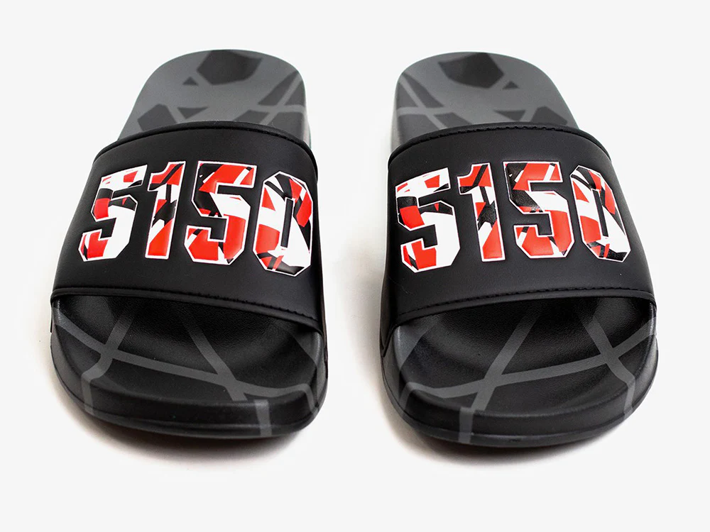 Slide into comfort in the 5150 Slides! From the beach to the backyard, to the streets, enjoy them all day long. The contoured footbed cradles and holds your foot in place while the padded strap feels as good as it looks. And of course, the eye-catching 5150 graphics show off your rockin’ style!